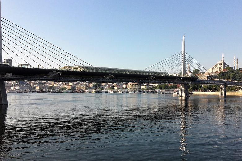 The Haliç Metro Bridge is easily accessible via the M2 Yenikapı-Hacıosman metro line. The 'Haliç' metro station is located directly on the bridge. You can reach it from either side of the Golden Horn; for example, from the historic Fatih area (Vezneciler or Yenikapı stations) or from Beyoğlu (Şişhane or Taksim stations). Pedestrian walkways run alongside the metro tracks, allowing for easy access and scenic strolls. The bridge is also visible from many vantage points around the Golden Horn, including Eminönü and Karaköy, and is a short walk from these areas.