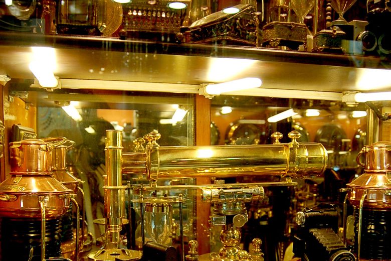 Visitors consistently describe the shop as a fascinating place, often likening it to a 'steampunk emporium' due to its eclectic collection. Reviewers are particularly drawn to the array of sextants, old globes, ship captain's spyglasses, and other brass instruments. The sheer volume and variety of items, from ancient diving boots to 'tiger teeth,' create a memorable browsing experience. While many appreciate the unique atmosphere, some note that prices can be high, reflecting the specialized nature and antique value of the items.