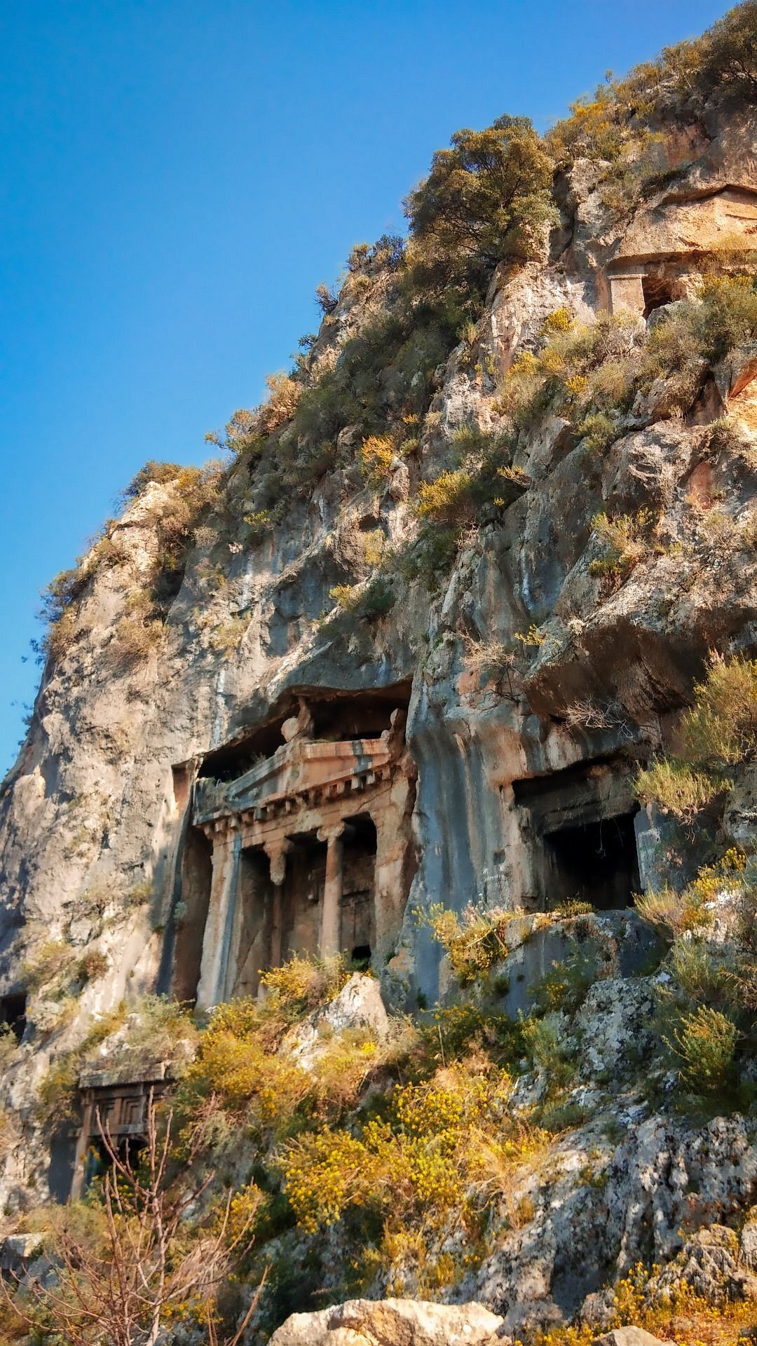 The tombs are easily accessible from Fethiye city center. Many visitors walk from the center, noting it's an easy walk to the base of the hill. For those driving, there's a small parking area at the base, which some reviewers found to be free. Taxis are another convenient option; one visitor mentioned a 15 TL taxi ride from town to the 'Kings Tomb Restaurant,' which is located next to the ticket office. The tombs are visible from various points in Fethiye, including the marina and the main road between Fethiye and Kayakoy, offering good photo opportunities even from a distance.